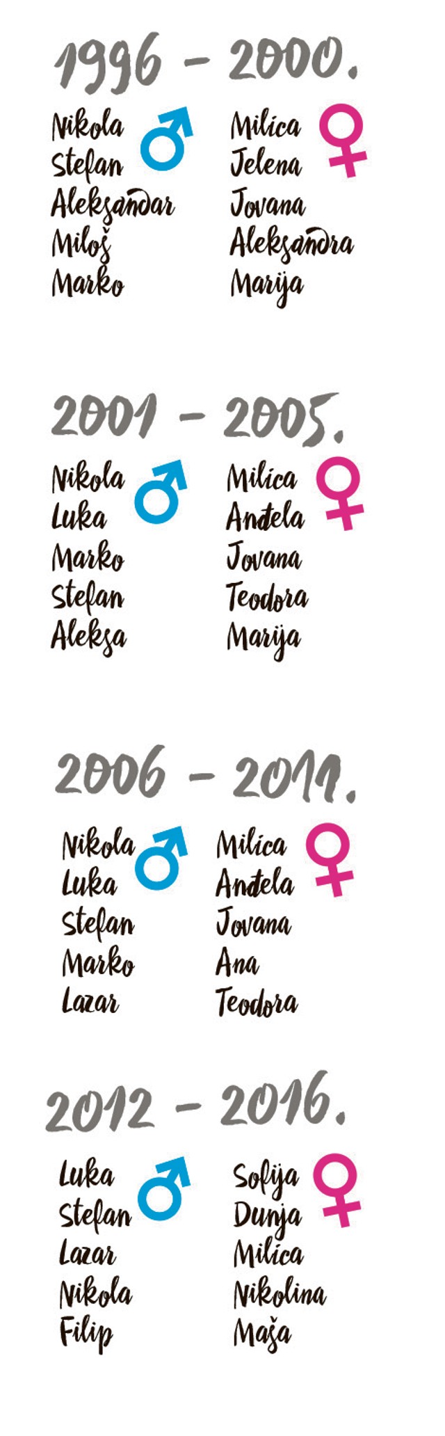 Takvu mješavinu nisu uzrokovali samo povijesni. Generalno tradicionalna muška imena sadrže manje samoglasnika nego ženska imena i kraća su. Najljepša moderna imena, muška i ženska, islamska, arapska, turska, perzijska, bosanska. Ovde vam nudimo listu sa 1najčešće davanih imena dečacima u beogradu u. U nastavku teksta će biti navedena neka od najpopularnijih kratkih muških imena u svetu, najviše u današnje vreme, kao i.